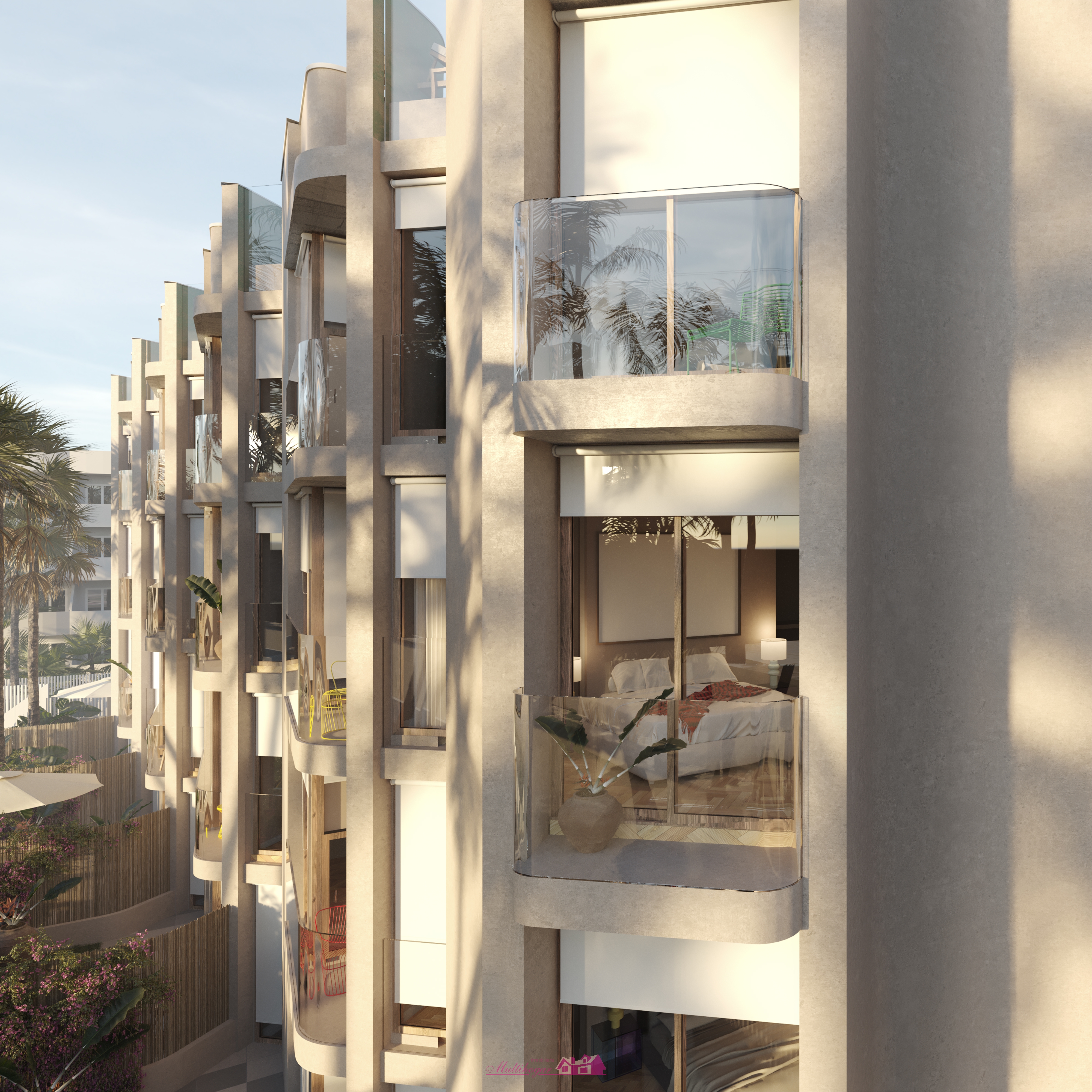 Concebido para ofrecer una experiencia completa, Belisla Bossa Nova se orquesta en torno a su fachada ondulante, con impresionantes vistas desde sus balcones de cristal, aportando máxima profundidad y perspectiva a las estancias principales de las 32 viviendas de 1 y 2 habitaciones, con 1 y 2 cuartos de baño, que conforman este proyecto.